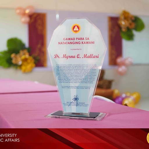 President Mallari is the first recipient of this highest award for her excellent and exemplary contributions and services to the university from March 2014 - March 2022.